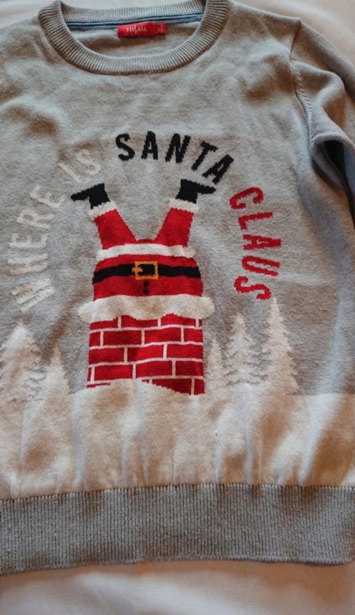 Pull gris santa claus garçon. Tissaia 8 ans. Porté 2 fois.