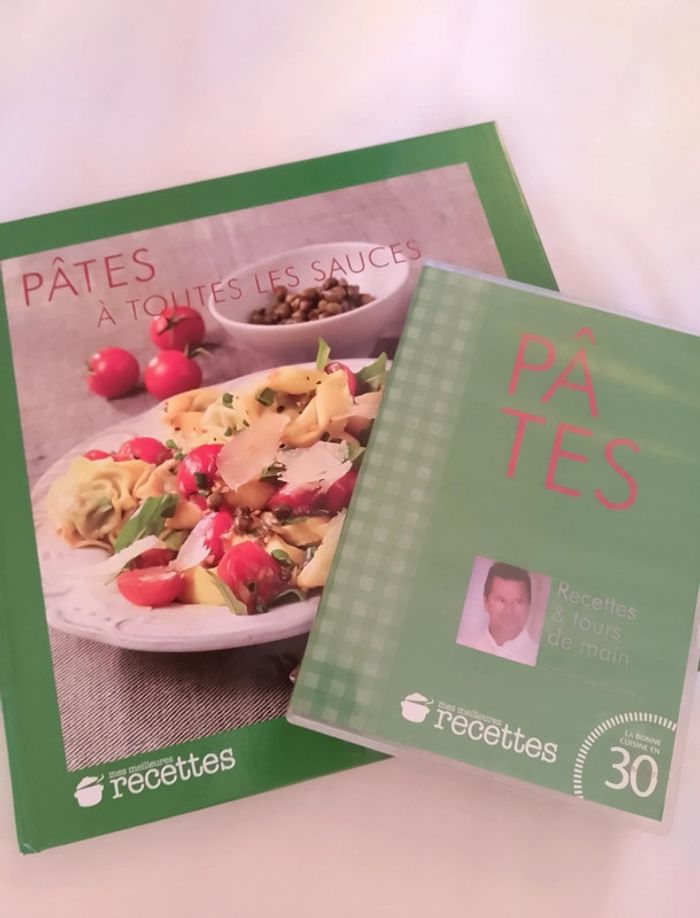 Livre cuisine pâtes à toutes les sauces Reader's Digest. Salade et soupes, pâte avec de la viande volaille oeuf, poisson fruits de mer, légumes..... Très bon état + son DVD.
