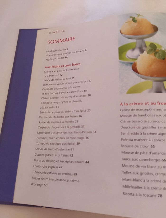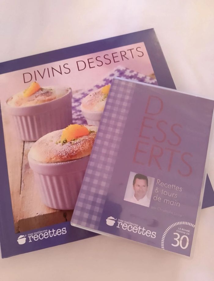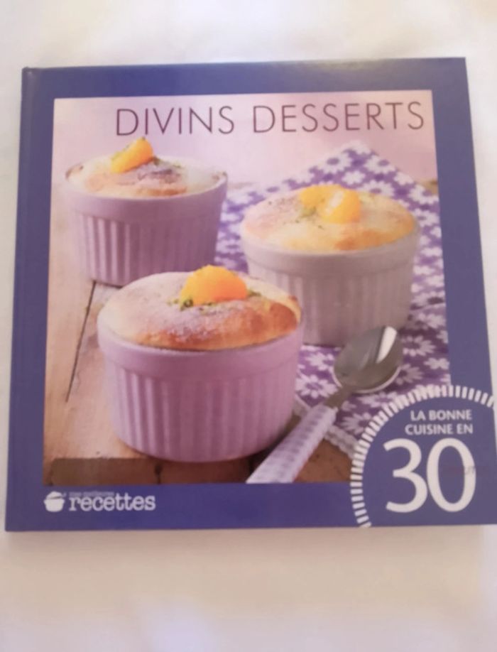 Livre divins desserts Reader's Digest. Dessert aux fruits, à la crème et fromage, au chocolat et café, dessert chaud et recette spéciales, très bon état. La bonne cuisine en 30 min. + Son DVD.