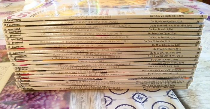 En lots ou celui qui vous intéresse. Plus de 21 magazines gourmand. Recettes 15 jours d'idées menus.... 8€ le lots 0,50€ le magazine, si vous voulez juste un magasine qui vous intéresse contacter moi je vous ferrais une annonce.