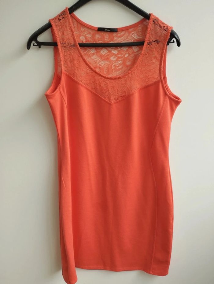 Robe moulante couleur mandarine ✓ taille 42 (étiquette coupée) ✓ avec de la dentelle sur la partie haute ✓ MIM #dinooblofemme