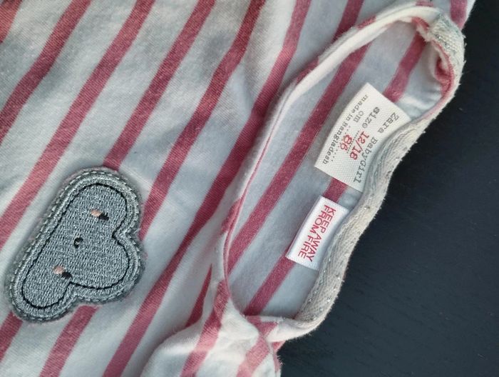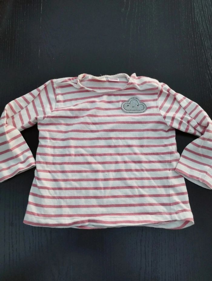 Tee-shirt marinière corail et blanc ✓ Zara ✓ 12-18 mois ✓ TBE ✓ avec un petit nuage brodé #dinooblofille