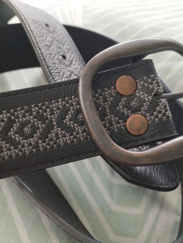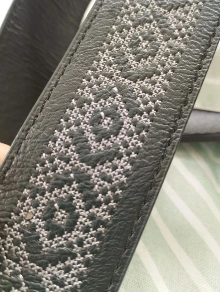 Ceinture noire ✓ longueur 105 cm largeur 4 cm ✓ synthétique ✓ noire avec motifs brodés gris ✓ TBE peu portée #dinooblofemme