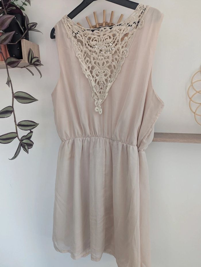 Robe femme beige avec dentelle taille 44 - photo numéro 1