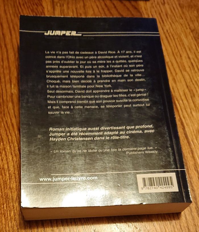 Livre Jumper lue 1 fois. Stocké dans mon garage il a pris l'humidité sur les 2 premières et dernières pages tâches jaune et le haut du livre voir les dernières photos a l'intérieur les autres pages du livre il n'y a rien.