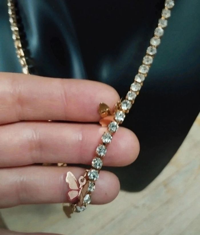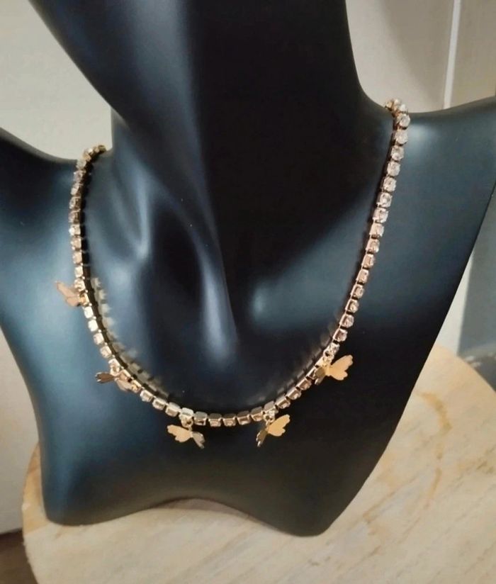 Collier Fantaisie avec strass et breloque papillon, neuf jamais porté #bijouxhailey49800