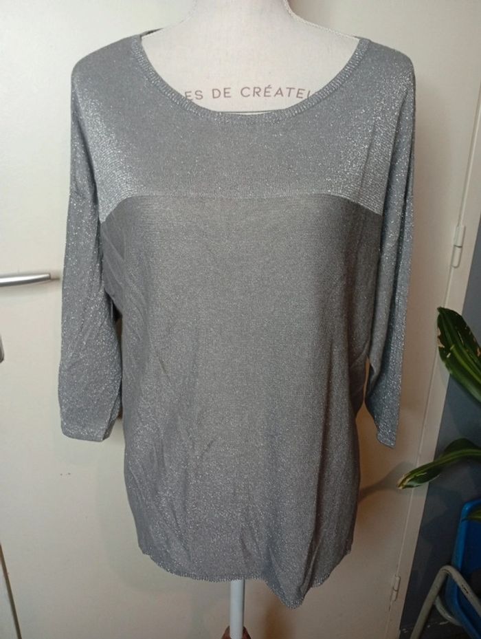Jolie pull fluide gris argenté taille L - photo numéro 2
