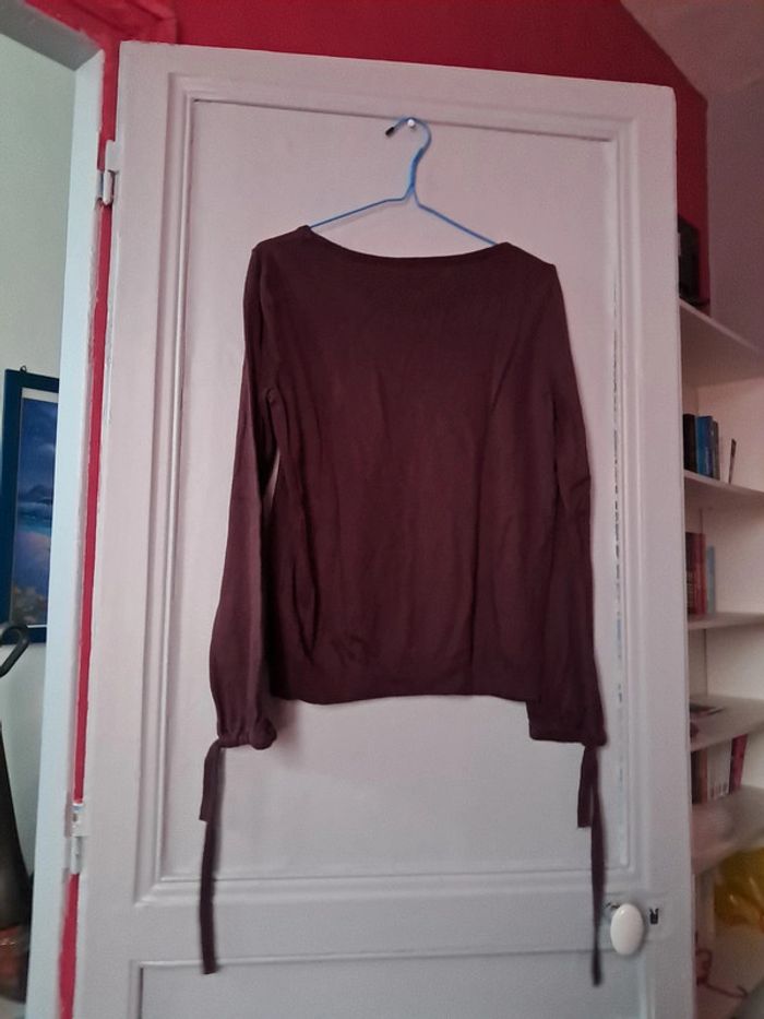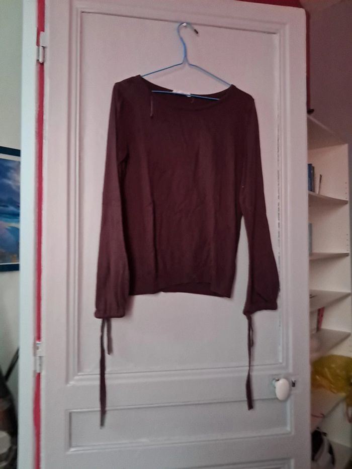 Pull violet cache cache taille s avec ficelle aux manches pour les resserrer