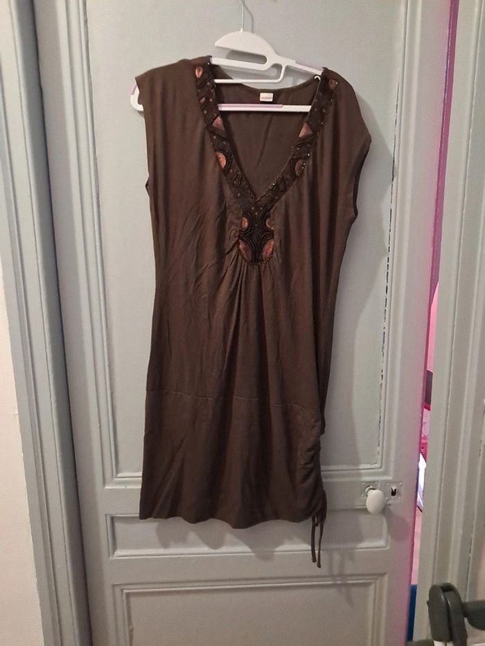 Robe marron manque juste quelques perles comme vu sur la 2eme photo taille 40 marque 3suisses