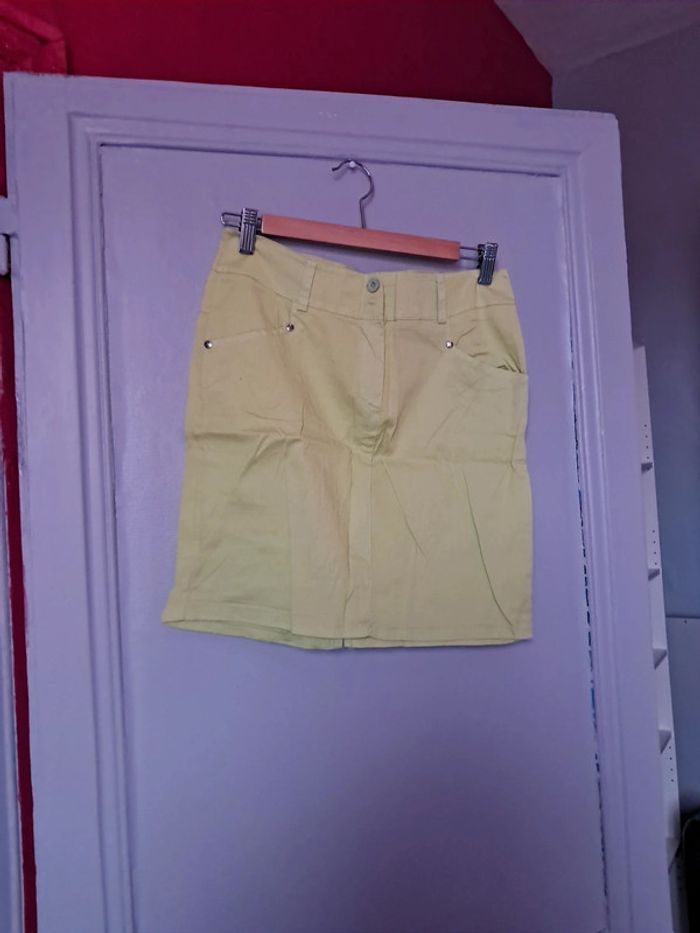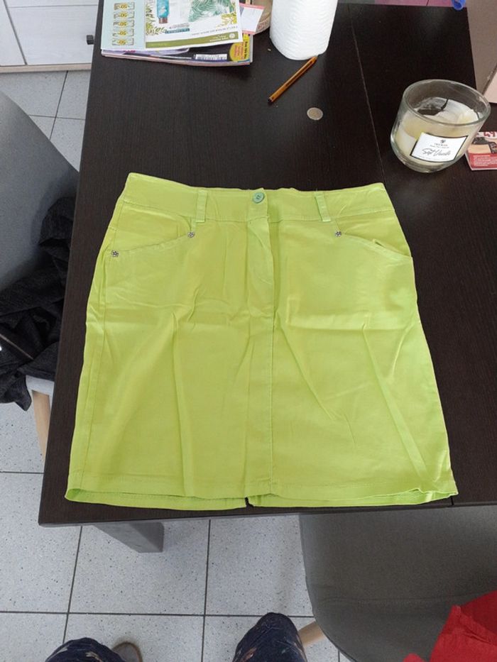 Jupe verte claire taille m matière légère couleur comme la première photo la lumière ne fait pas la même couleur sur les 2 autres