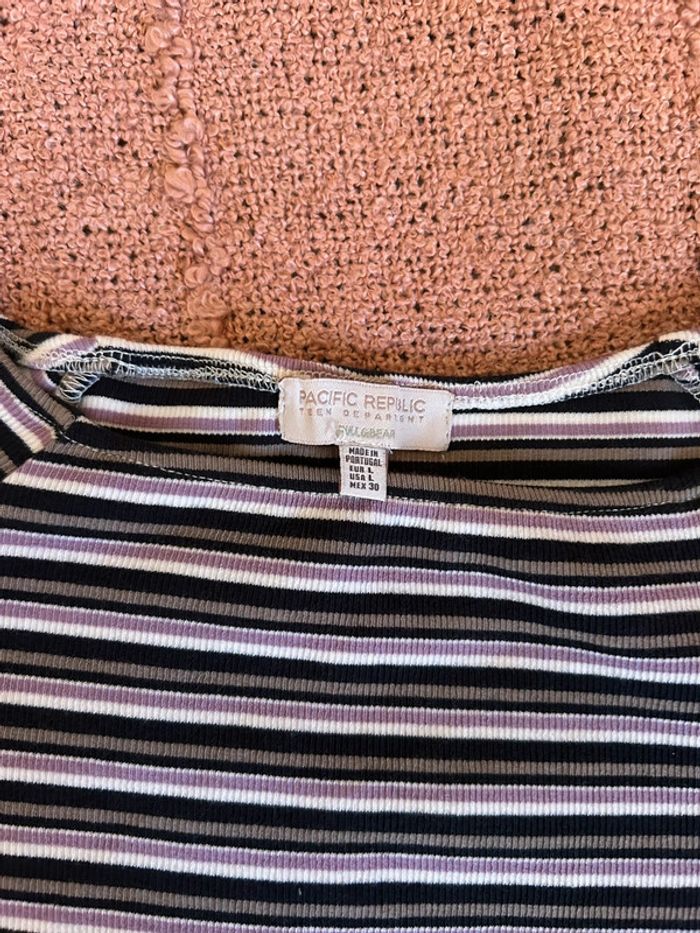 Crop top à rayures mauves et blancs • taille L - photo numéro 1