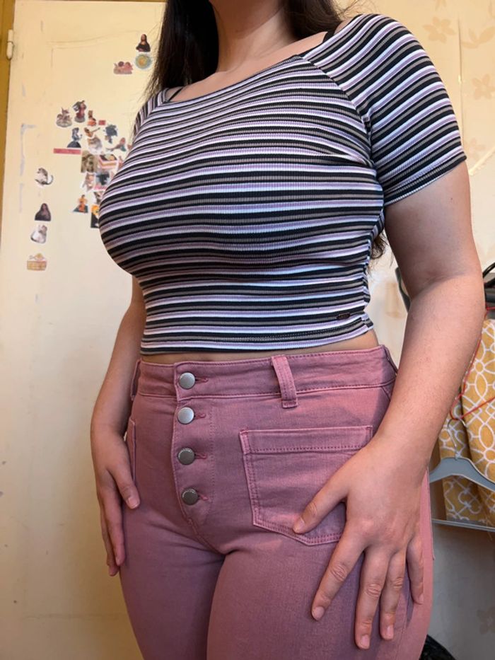 Crop top à rayures mauves et blancs • taille L - photo numéro 6