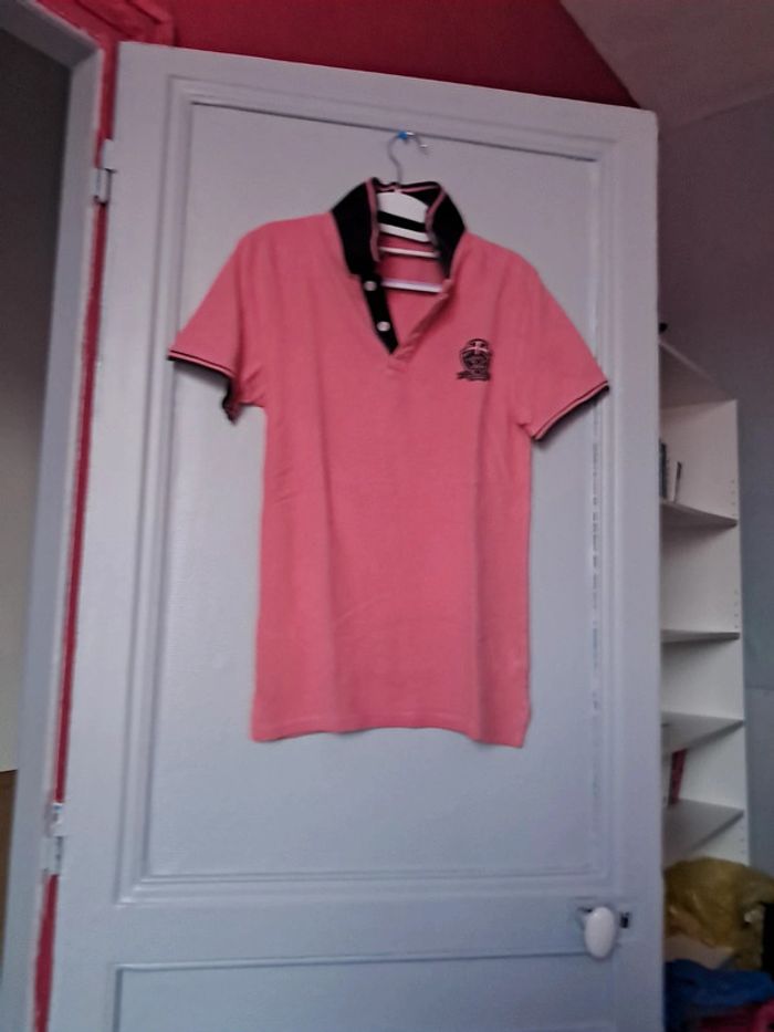 Polo manche courte rose col bleu marine kiabi taille S