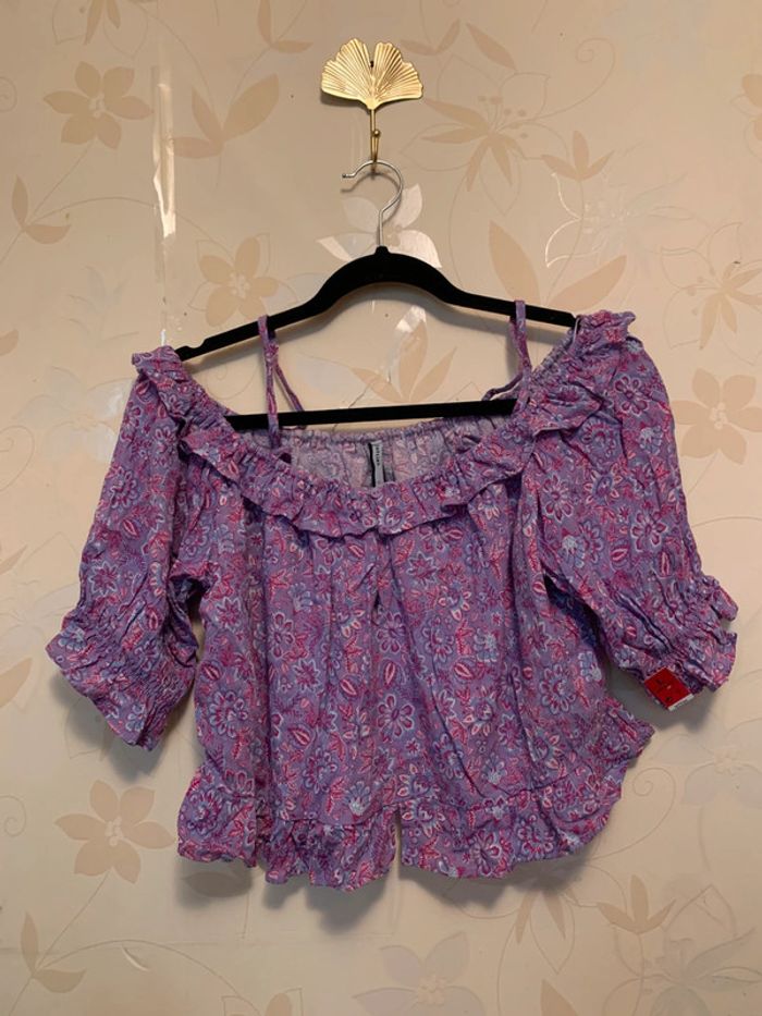 Blouse lilas motifs fleuris - photo numéro 2