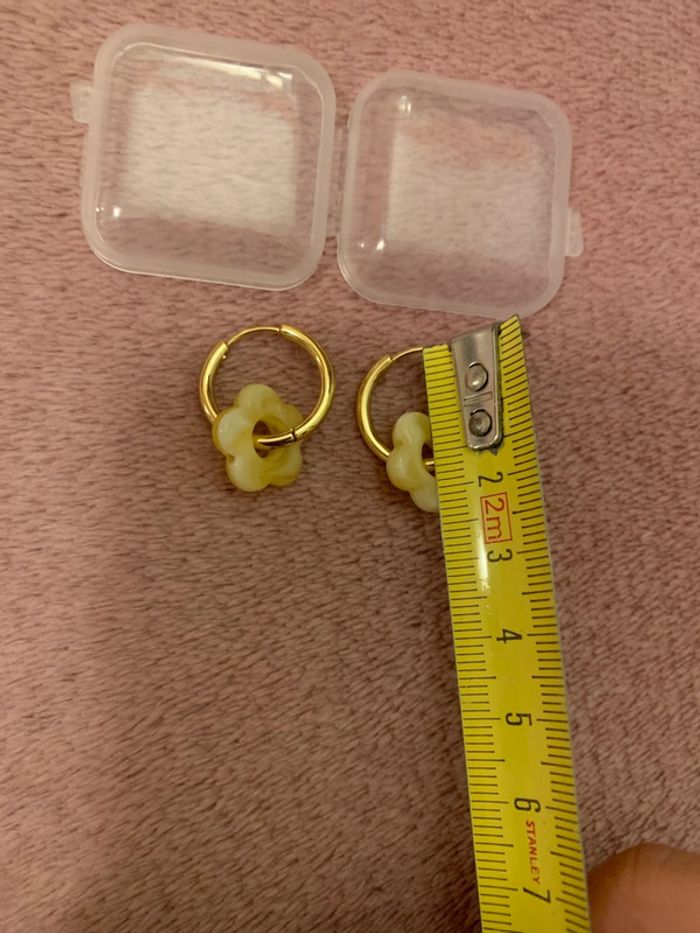 ⚠️PAS DE VINTED GO ⚠️ Aucune annulation de commande une fois le bordereau téléchargé. Merci de bien lire la description de l’article, de regarder toutes les photos de l’annonce et surtout de poser vos questions AVANT achat. Jolie paire de boucles d'oreilles créoles dorée et fleurs en résines. Très mignonne. Vous pouvez les porter pour une occasion ou même au quotidien. En acier inoxydable et plaqué doré à l'or fin 14 carats. Résiste à l’eau et ne s’oxydent pas. Dimensions indiqué en photo. En très bon état. Vendu avec l’étui. #vintedgift #idéecadeau #cadeau #ideekdo #purelei #vintage #vintedfrance #secondhandfashion #vintedshop #minimalist #aesthetic #parisianstyle #vintagelook #bouclesdoreillesvintage #bijouxvintage #tendancevintage #tendance #analuisa #bijoutendance #créoles #bouclesdoreillesvintage #emmaetchloé #styleretro #styleboheme #retro #boheme #chic #elegente #PDPAOLA #moonstone #disney #pohesia #jardindesbijoux #aparanjan #welisahbijoux #belize #disney gypsy, ethnique, coachella élégant, romantique, joaillerie, stones zircons, luxe, anneaux, gems multicolores, prénom, plaqué or 3 microns 18K, argent massif, acier inoxydable, boite cadeau pour la saint valentin, stainless steel jewelry, gold plated, silver, earring, necklace, ring, bijou cadeau d’anniversaire tendance créations argent 925