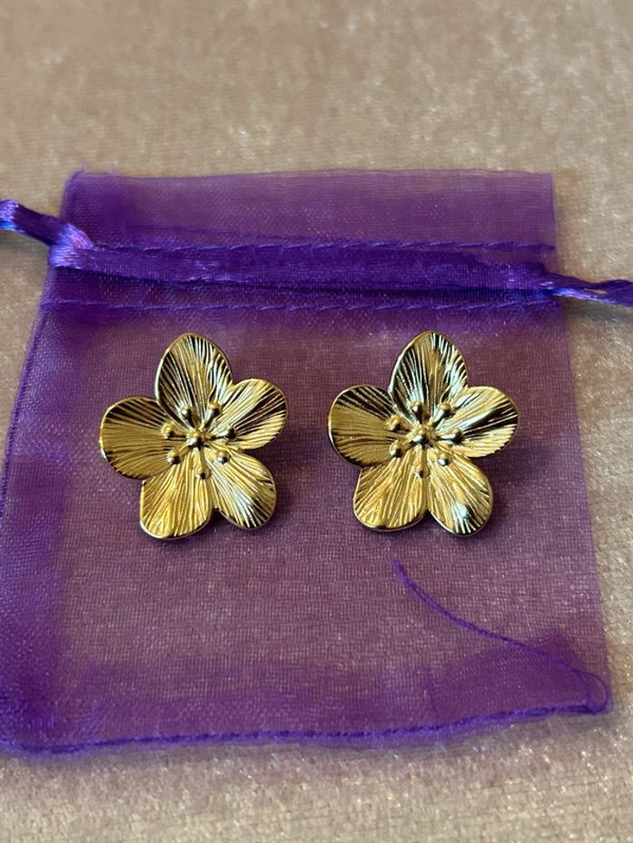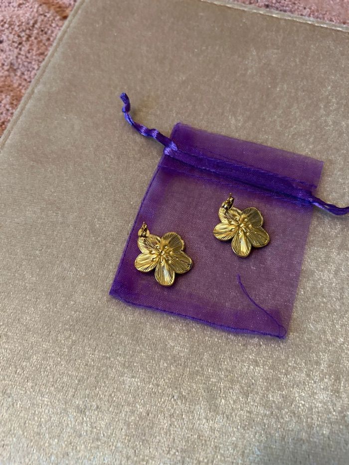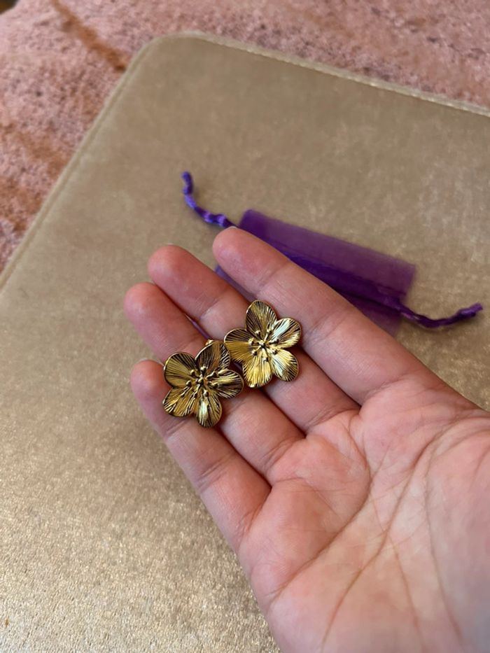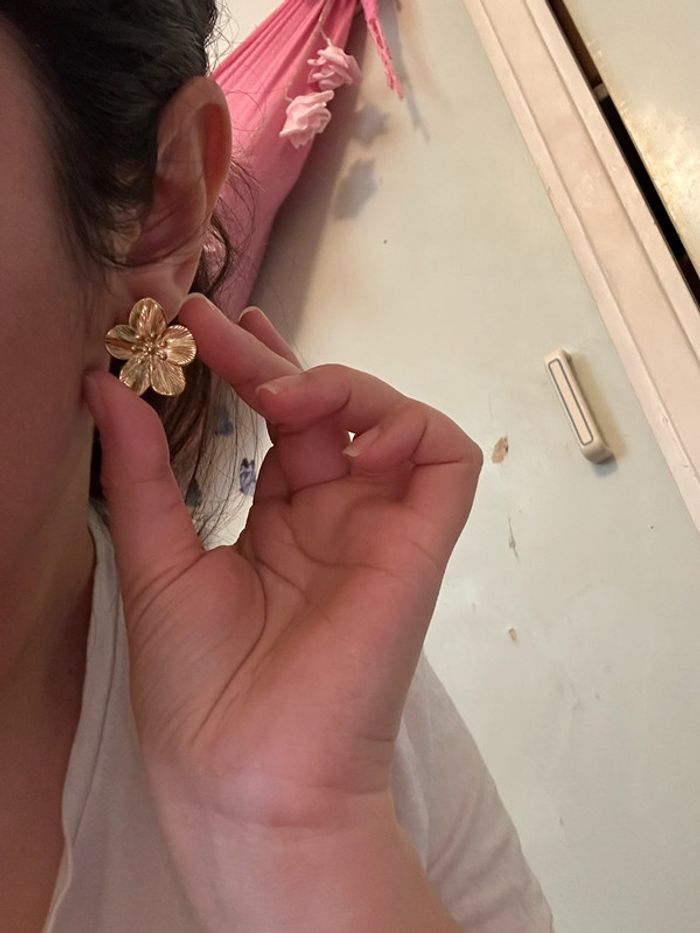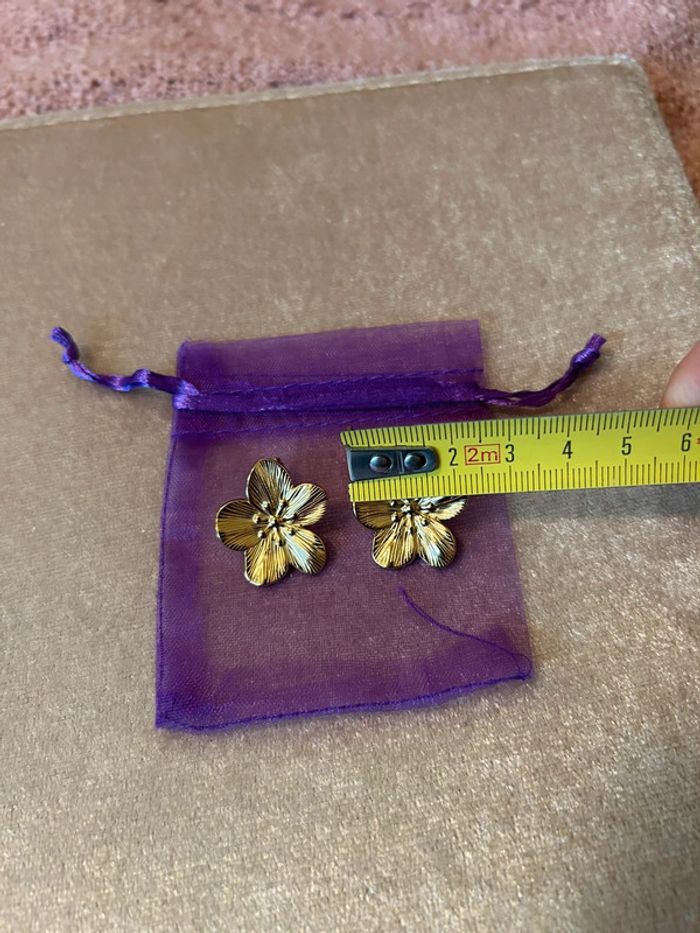 Boucles d’oreilles chic fleurs dorée - photo numéro 7