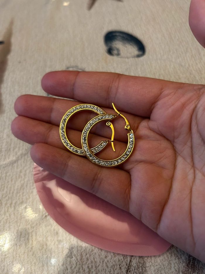 Créoles dorée et zircons - photo numéro 7