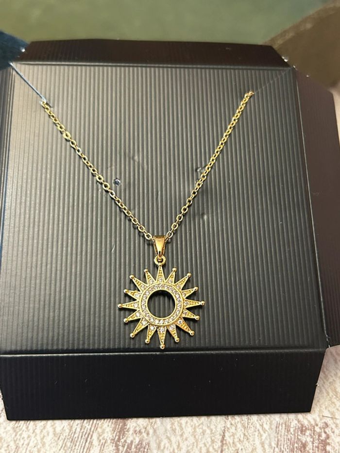 Collier pendentif soleil en acier inoxydable - photo numéro 1