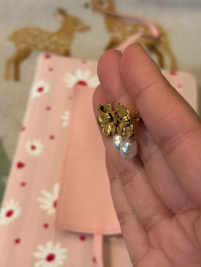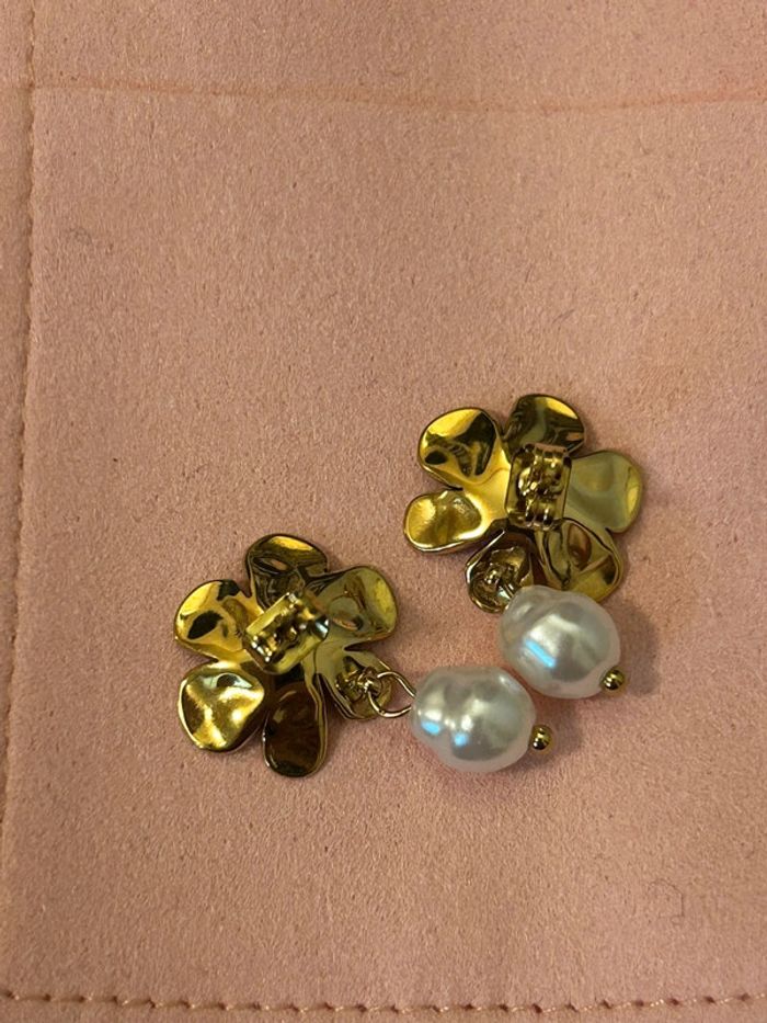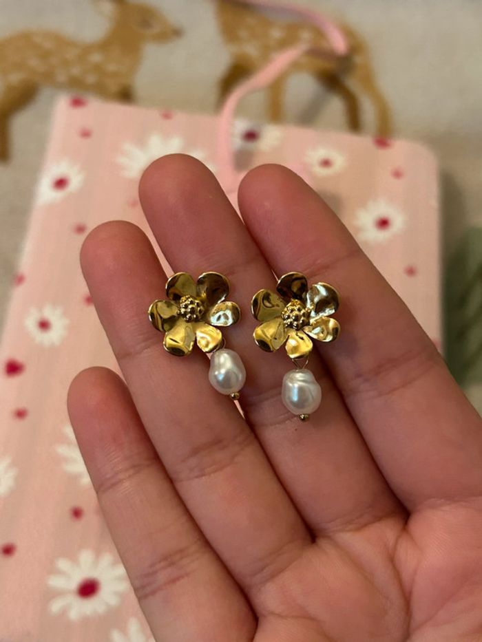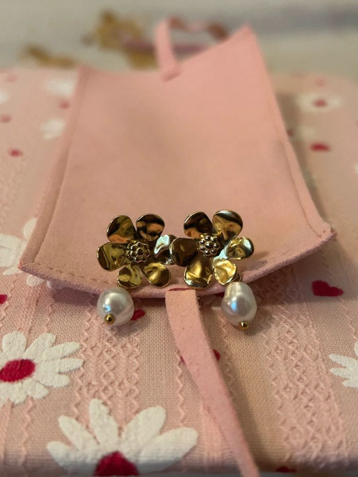 Élégantes et raffinées, ces boucles d’oreilles en forme de petites fleurs dorées dans un style romantique et feminine sont sublimées par une perle blanche pendante. Un bijou à la fois discret et sophistiqué, parfait pour une occasion spéciale ou pour ajouter une touche chic à une tenue du quotidien.
