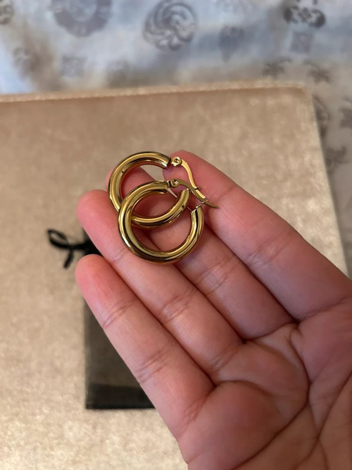 ⚠️ Aucune annulation de commande une fois le bordereau téléchargé. Merci de bien lire la description de l’article, de regarder toutes les photos de l’annonce et surtout de poser vos questions AVANT achat. Superbe paire de boucles d’oreilles dorées, au design moderne et élégant. Modèle très tendance pour ce Printemps. Idéales à porter en journée comme en soirée, elles sont légères et faciles à porter. En acier inoxydable et plaqué or 18 carats. Résiste à l’eau, au temps et ne s’oxydent pas. Dimensions indiqué en photo. En très bon état. Vendu avec l’étui. #vintedgift #idéecadeau #cadeau #ideekdo #purelei #vintage #vintedfrance #secondhandfashion #vintedshop #minimalist #aesthetic #parisianstyle #vintagelook #bouclesdoreillesvintage #bijouxvintage #tendancevintage #tendance #analuisa #bijoutendance #créoles #bouclesdoreillesvintage #emmaetchloé #styleretro #styleboheme #retro #boheme #chic #elegente #PDPAOLA #moonstone #disney #pohesia #jardindesbijoux #aparanjan #welisahbijoux #belize #disney #louyetu #come #bohm #zag #heyharper gypsy, ethnique, coachella élégant, romantique, joaillerie, stones zircons, luxe, anneaux, gems multicolores, prénom, plaqué or 3 microns 18K, argent massif, acier inoxydable, boite cadeau pour la saint valentin, stainless steel jewelry, gold plated, silver, earring, necklace, ring, bijou cadeau d’anniversaire tendance créations argent 925