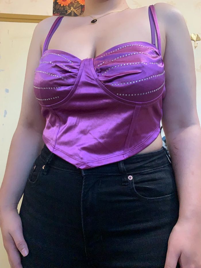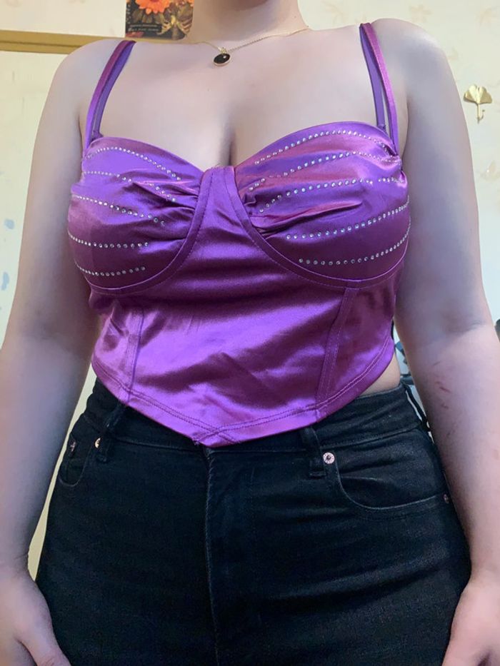 Top couleur violet en satin. Style corset avec strass au niveau de la poitrine. Fines bretelles réglables. Tissu doux au toucher, ne gratte pas. En très bon état Taille L Longueur : 44,5cm Aisselles à aisselles : 41cm #vintage #vintedfrance #secondhandfashion #outfit #ootd #autumn #fashion #secondhand #vintedaddict #vintedteam #vintedshop #minimalist #aesthetic #parisianstyle #paris #vintagelook #vintageclothes #vintagestyle #automnehiver #automne #hiver #dressingchallenge #winter #winterlook #winterstyle #tendance #welisah_L Minimalist style Parisian style Neutral style Copenhagen style Stockholm style Chie Dierf Old Fashion Whimsigoth La senza brandy halter neck boys top zip up racerjacket knit zip up Chic Duchesne meringue Minimalist rockabilly mercredi wednesday Aesthetic rock Bohème Stockholm style bohemian psyché Parisian style hippie Copenhagen style vaporeuse french style fluffy américain style paillette brodé romantique doré champêtre 80s 70s rétro Space âge edad año aesthetic lyce liceo fairy Univ universidad fais main mallone chaqueta transparente fan soie brodé Mickey disney popeline Crochet gancho gancio Gonflé estrecho collo col rondo cuadrado 2000 y2k deadstock 00s challenger bouffant 90's 70's seventies bariolé oversize France Made in France houndstooth pata de gallon sauge Pied de Poule fatto mano hecho por mano fais main coton autrichien anglais anglais français arc-en-ciel rainbow texturé mystique élégante