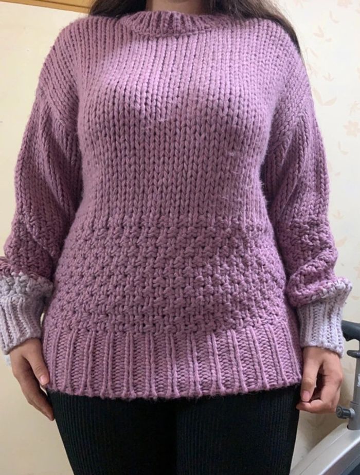 Pull d’hiver bicolore Dusty Mauve - photo numéro 1