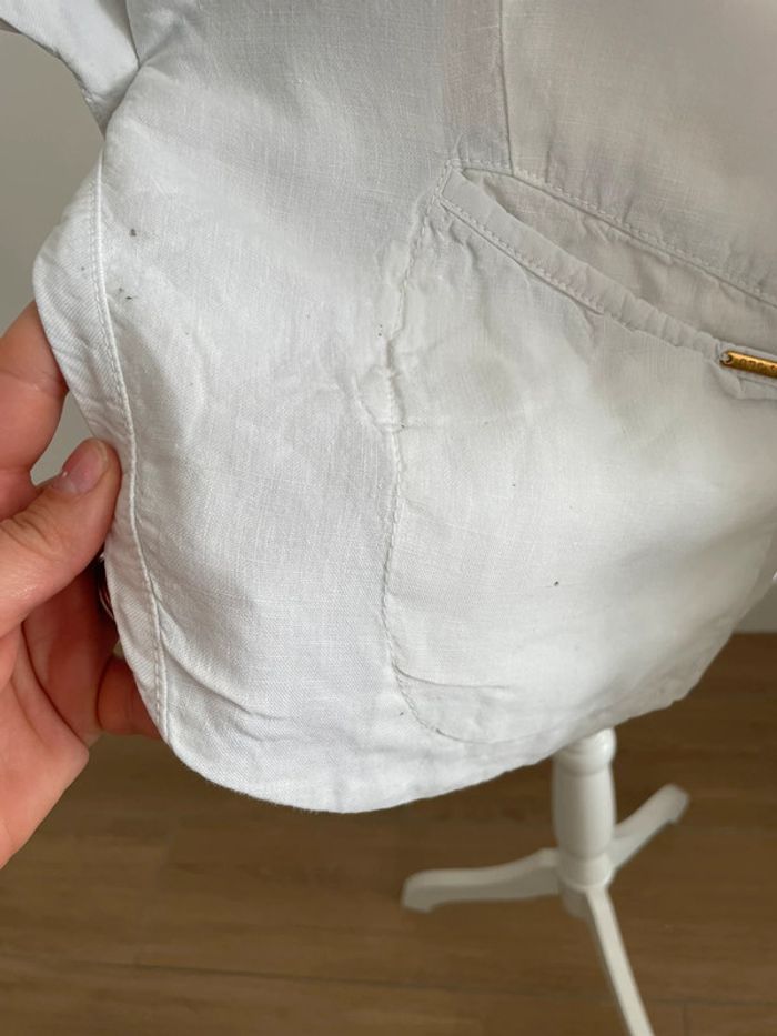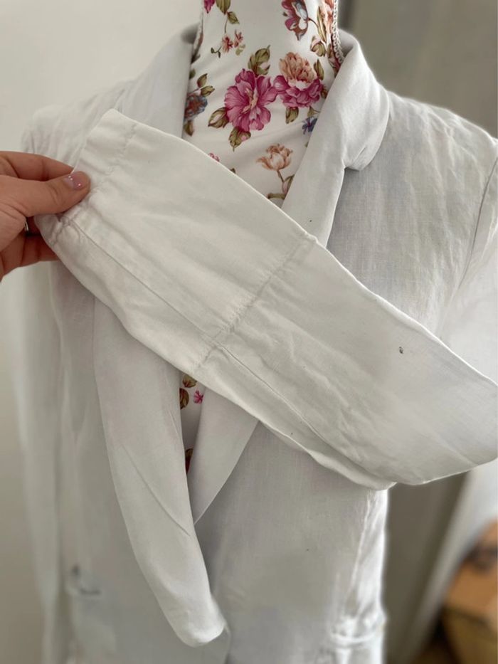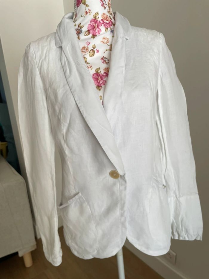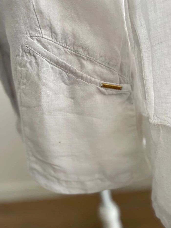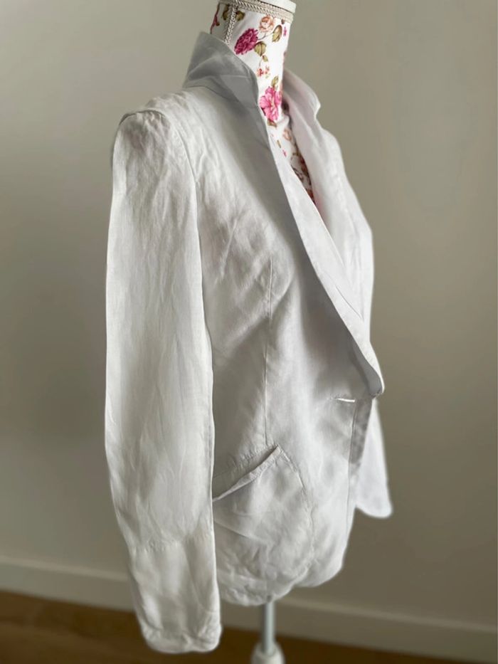 Blazer en lin blanc Taille : 38 Marque : One step Quelques taches voir les photos Dimensions Épaule 38 cm Longueur 67 cm