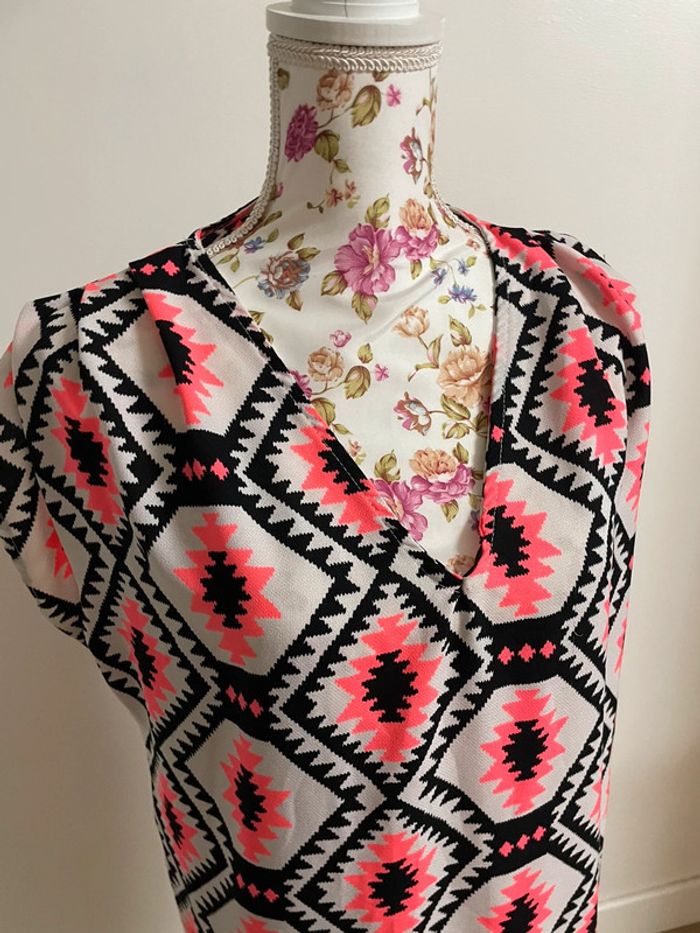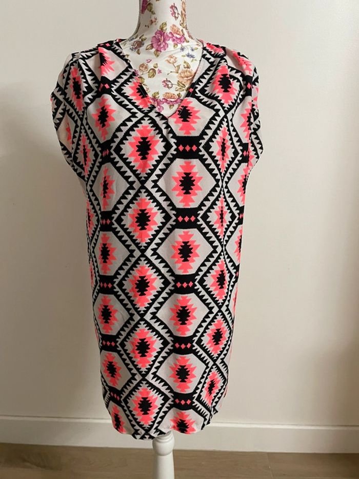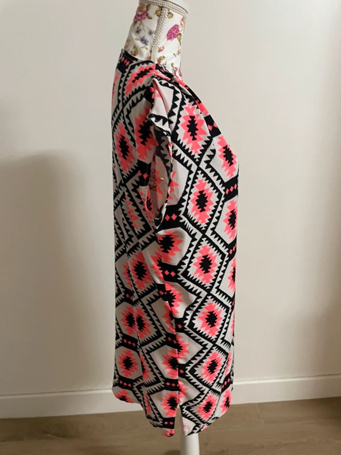 Tunique longue Sans marque Couleur: blanc rose et noir Taille L Dimensions Épaule 50 cm Longueur 81 cm