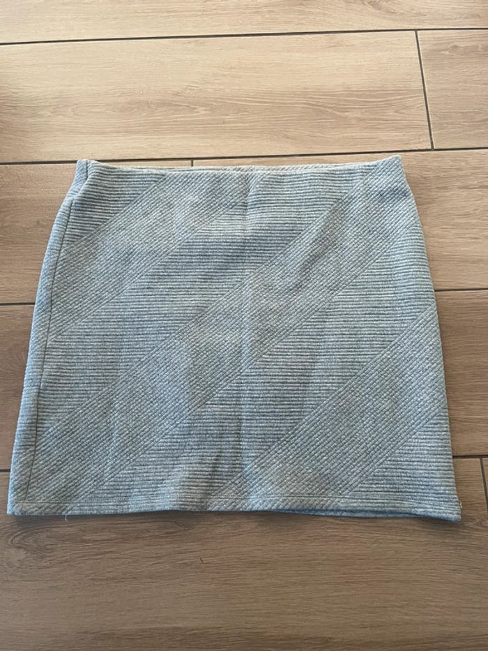 Jupe grise gaufré Taille: L mais correspond à un XL Longueur : 42 cm Marque : Promod
