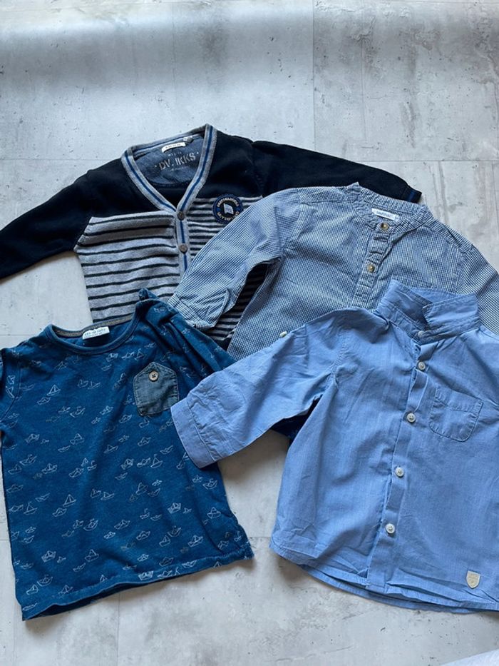 Lot de vêtements garçons 12 mois: • 1 gilet IKKS • 1 chemise Zara • 1 chemise Bout’chou col Mao • 1 t-shirt à manche longue next baby