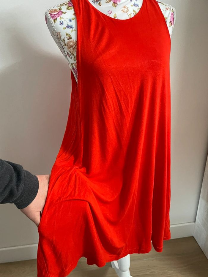 Robe fluide rouge corail avec poche dos nageur - photo numéro 1