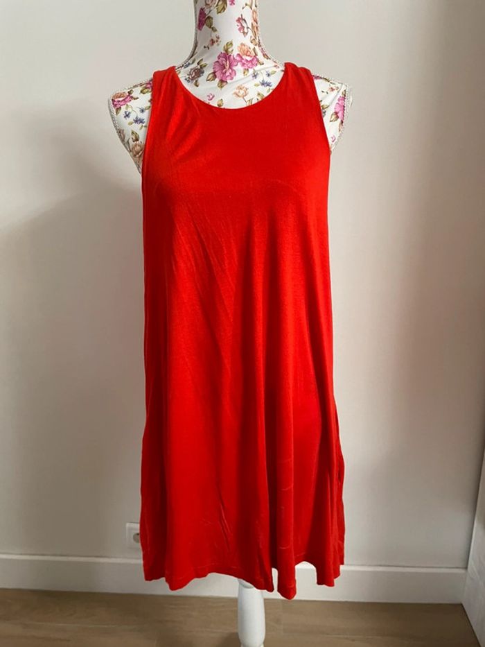 Robe fluide rouge corail avec poche et dos nageur Taille : M Marque: H&M longueur 89 cm