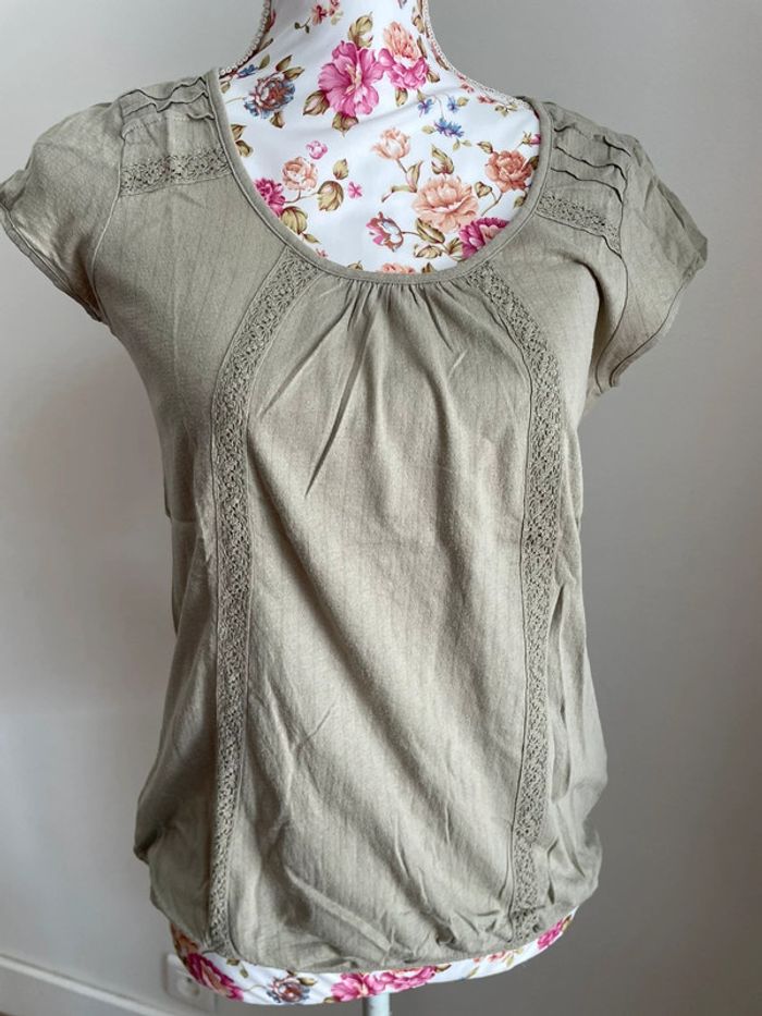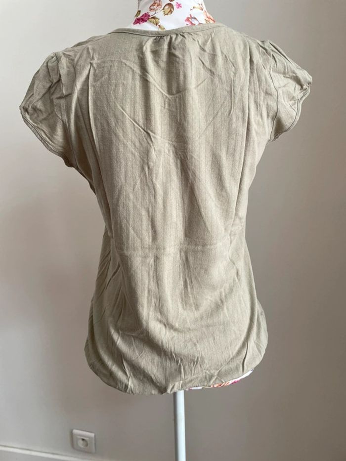 Haut camaïeu vert olives Taille 36 En parfait état Dimension Épaule à épaule : 36 cm Longueur: 60 cm