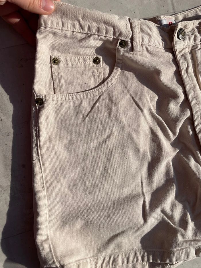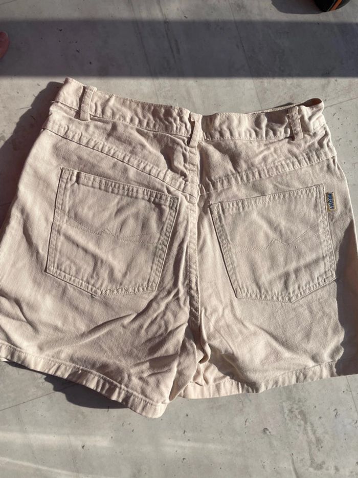 Short en jean beige, taille haute Marque : Front & back Taille : 40 (correspond plutôt à un taille 36 38 ) Longueur : 35,5 cm