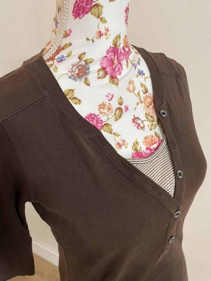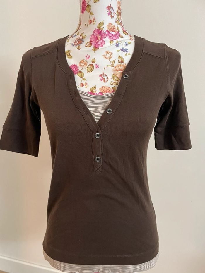 T-shirt col V esprit avec effet rayure - photo numéro 5