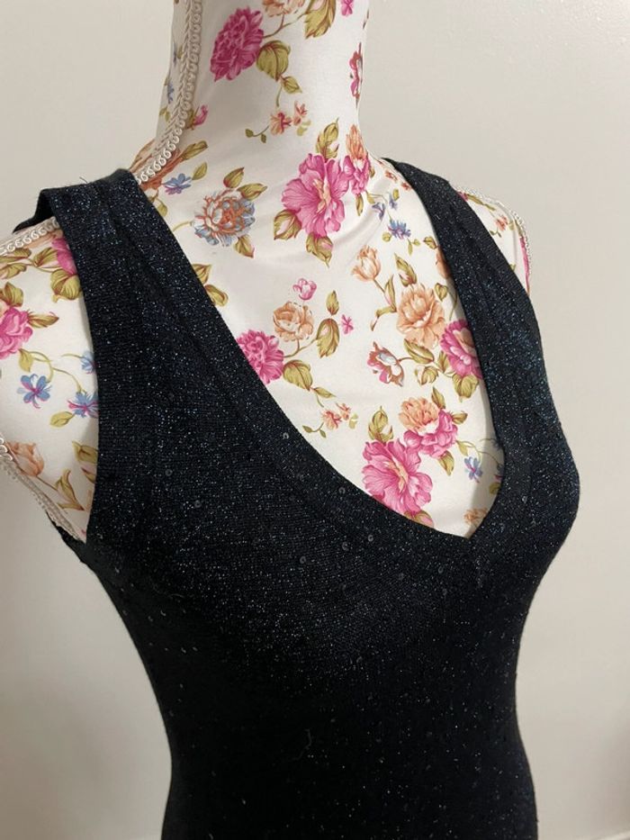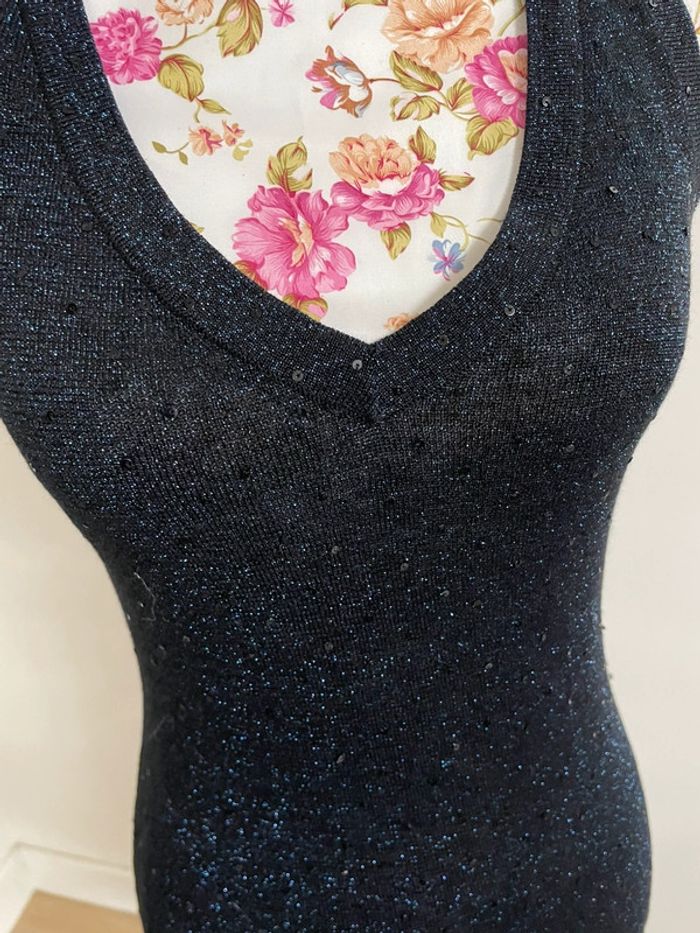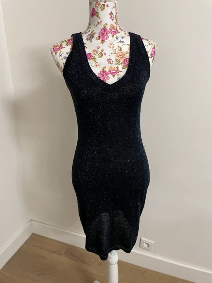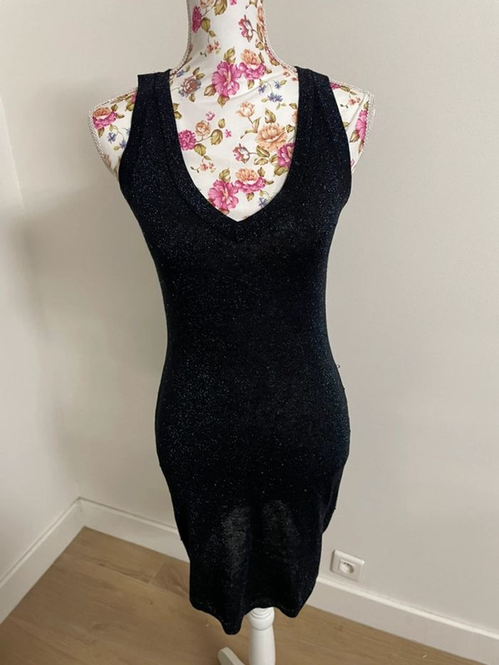 Robe con V avec paillettes bleu et sequin noir Marque : Pimkie Couleur : noir et bleu Taille 36 Longueur : 89 cm