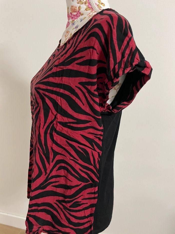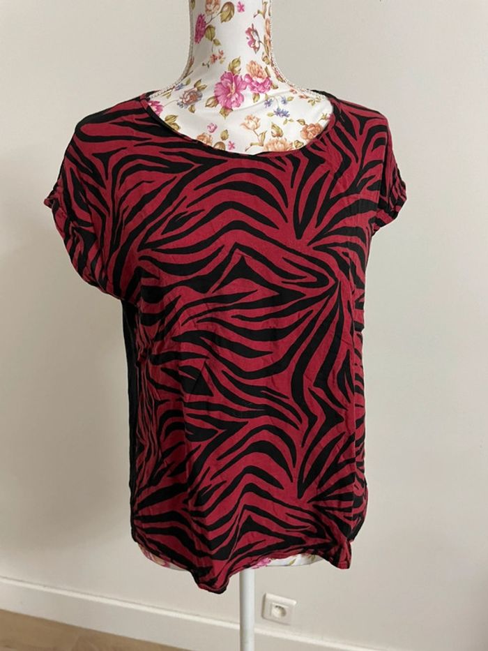 Haut Etam Couleur : rouge et noir Taille S Dimensions Épaule à épaule : 38 cm Longueur: 59 cm