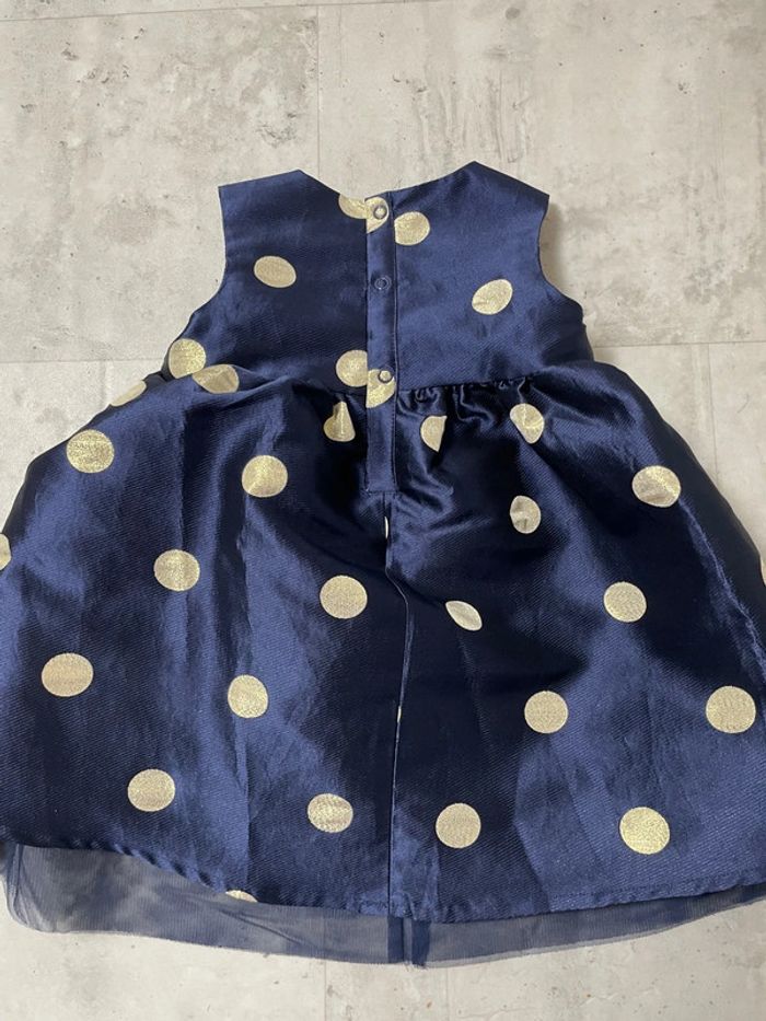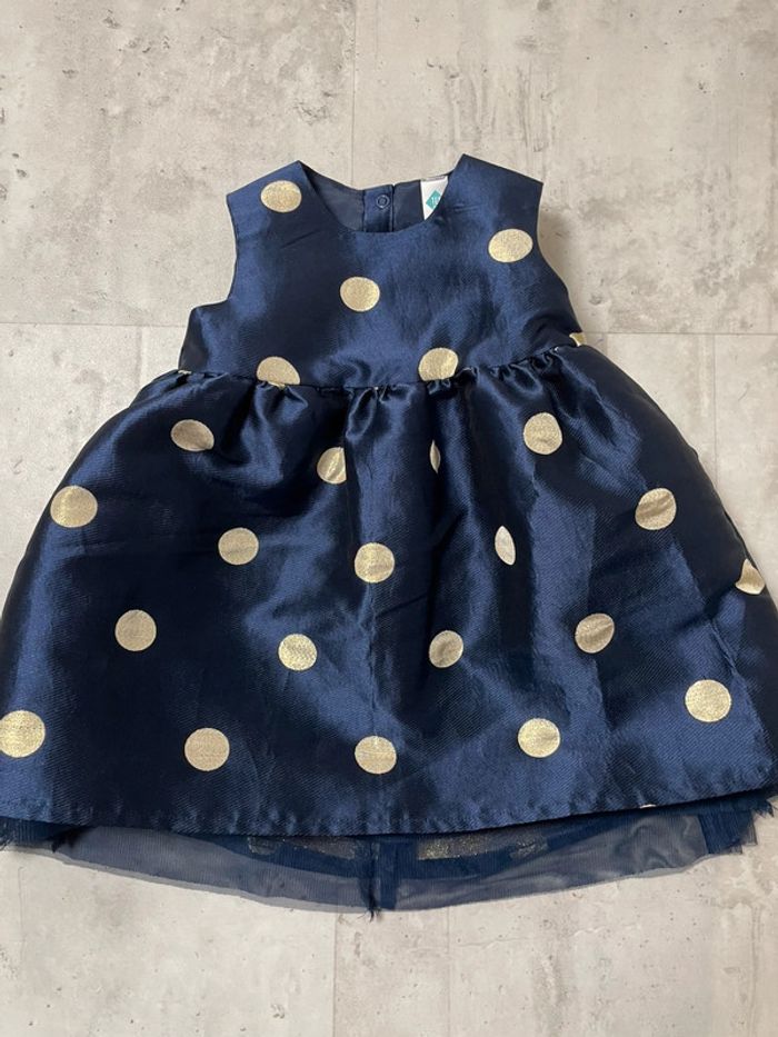 Robe de soirée impeccable Taille : 18 mois Marque : TEX Couleur: bleu marine et doré Mise une seule fois