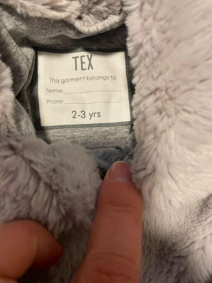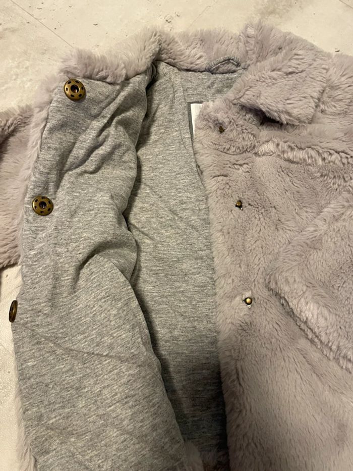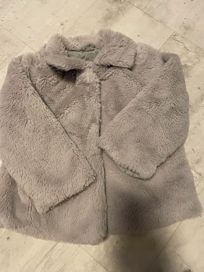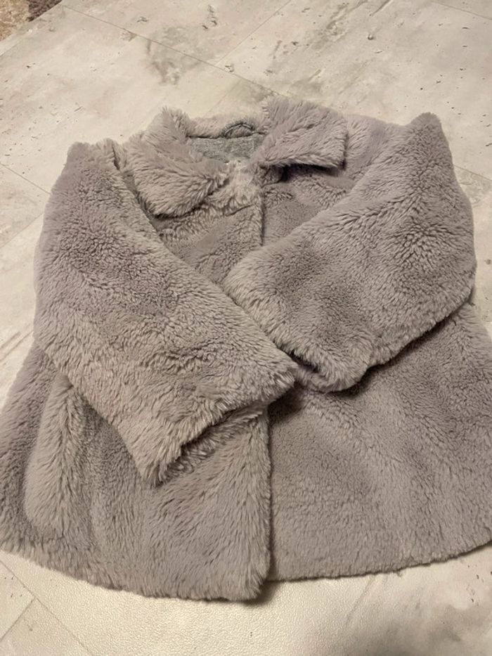 Manteau fausse fourrure, jamais porté, oublié dans le placard (avec d’autre) Taille 2-3 ans État comme neuf (mais sans étiquette) Couleur gris clair