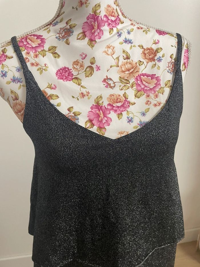 Top/debardeur Pimkie Taille 36 Couleur : noir et argenté Dimensions : Aisselles à aisselles : 40 cm Longueur : 48 cm