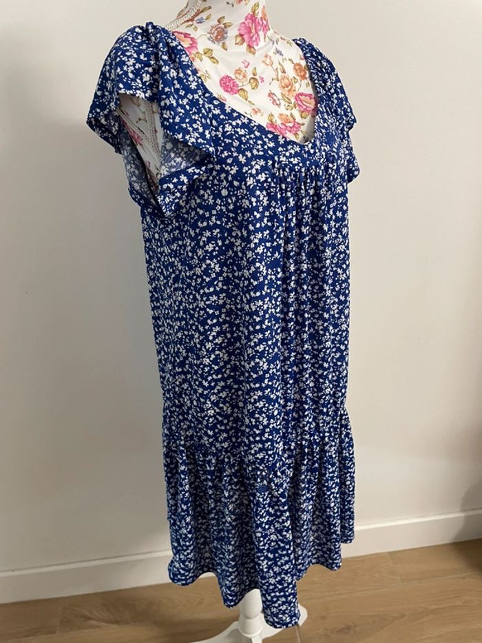 Robe neuve avec étiquette bleu à fleurs blanche - photo numéro 1