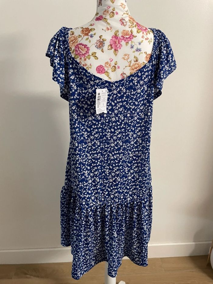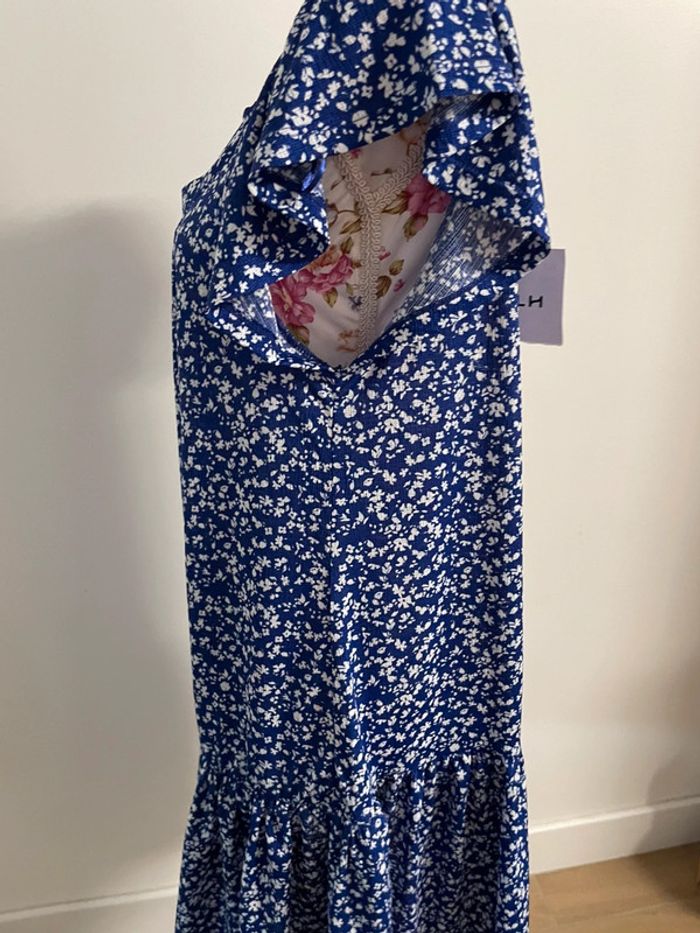 Robe neuve avec étiquette bleu à fleurs blanche - photo numéro 2
