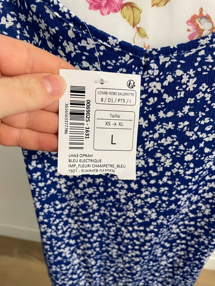 Robe LA HALLE collection été 2024 Taille : L Couleur : bleu et fleurs blanche Neuve avec étiquette Longeur: 91 cm