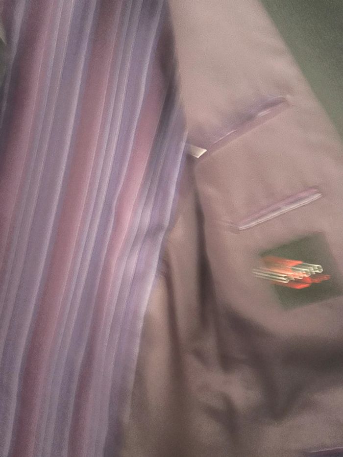 Costume homme noir rayé Taille veste: 54 Mesure : Épaule à épaule : 50 cm Épaule au bas: 79 cm Manche d'épaule au bas: 64 cm Taille pantalon 46 Mesure : Taille : 44 cm Longueur: 114 cm