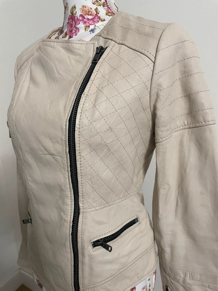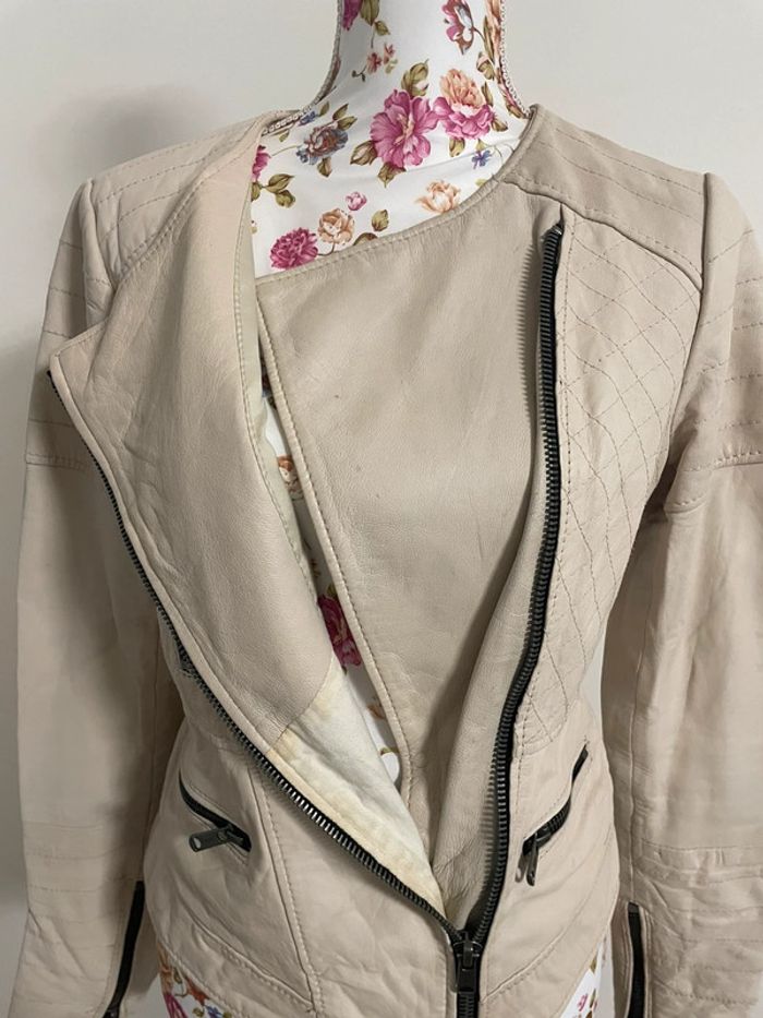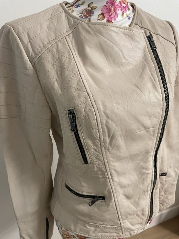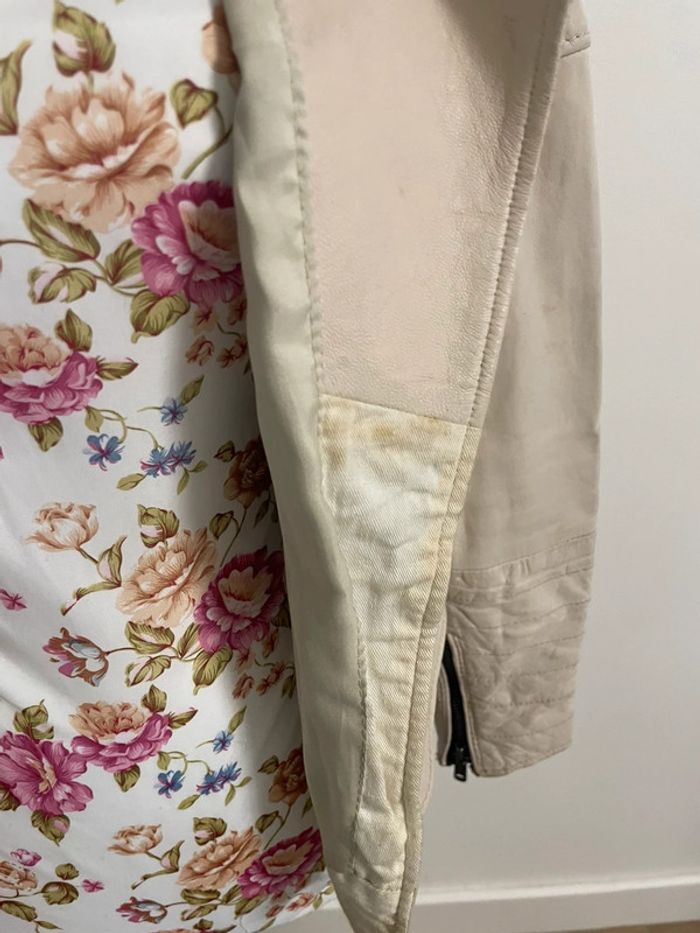 Blouson style motard blanc cassé Marque: Bershka Taille L En bon état général Tache interrieur, visible sur les photos