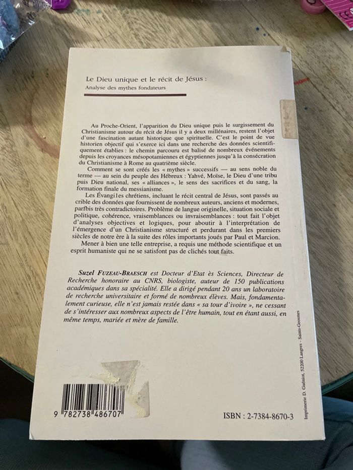 Le Dieu unique et le récit de Jesus : analyse des mythes fondateurs. Suzel FUZEAU-BRAESCH Édition l’Harmattan
