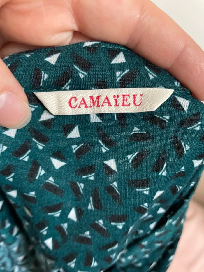 Chemisier camaïeu Couleur vert, noir et blanc. Taille 36 Épaule à épaule 36 cm Longueur 58 cm