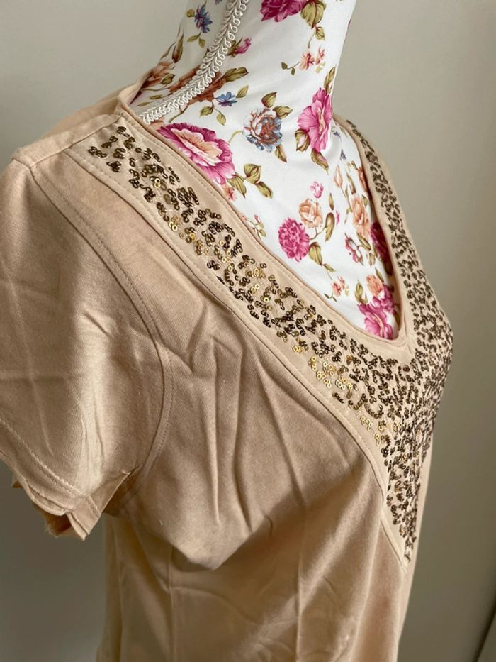 Tee-shirts col V avec sequin - photo numéro 4