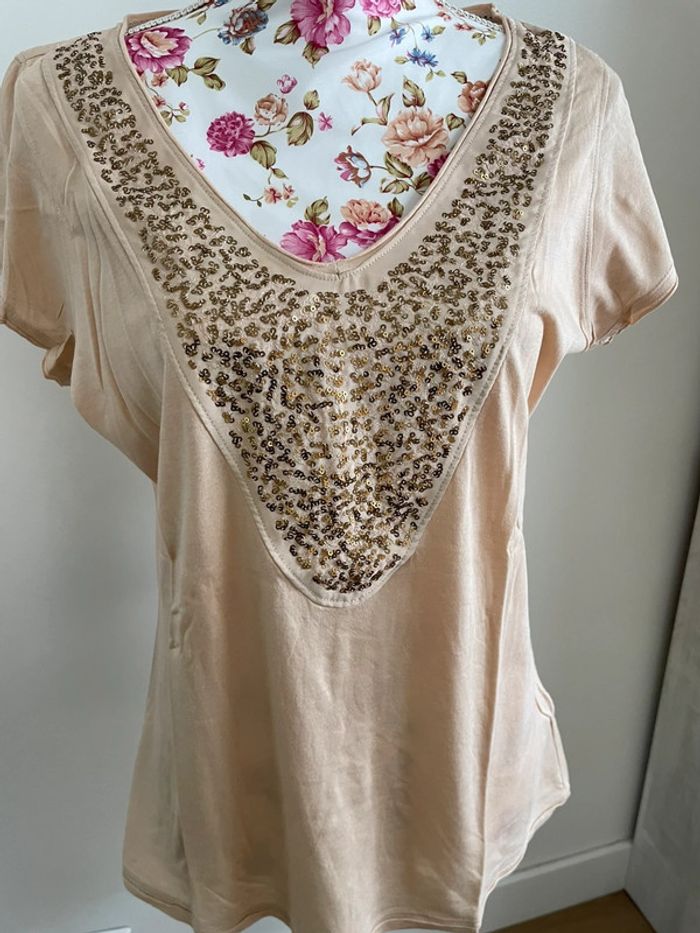 Tee-shirts col V avec sequin - photo numéro 1