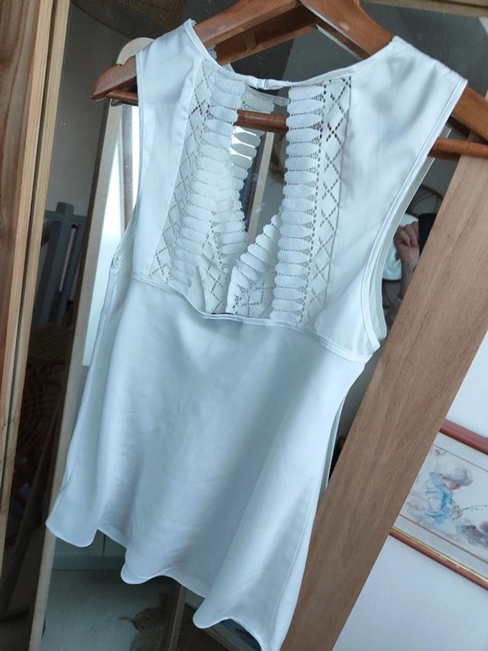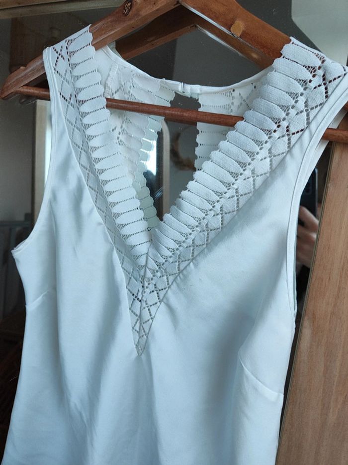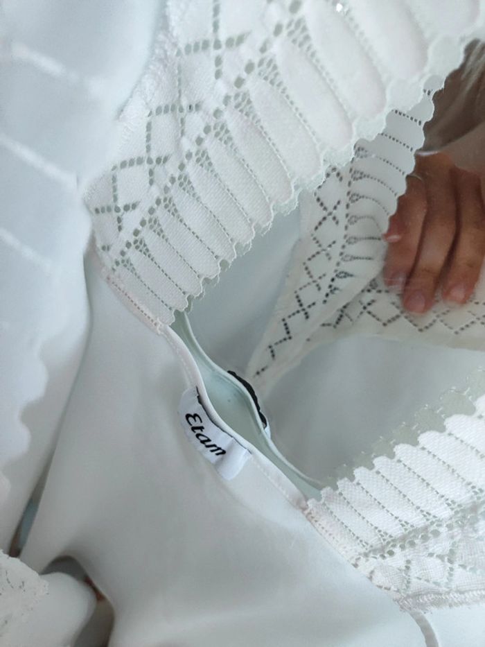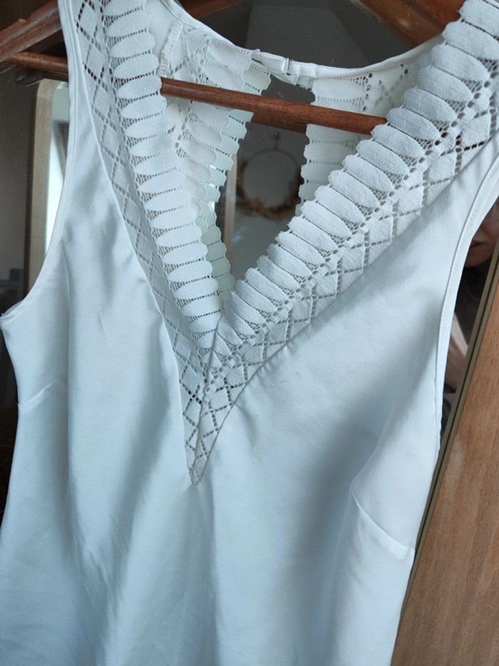 Haut de nuit pyjama satin blanc Dos nu et jolie dentelle Taille XS Etam